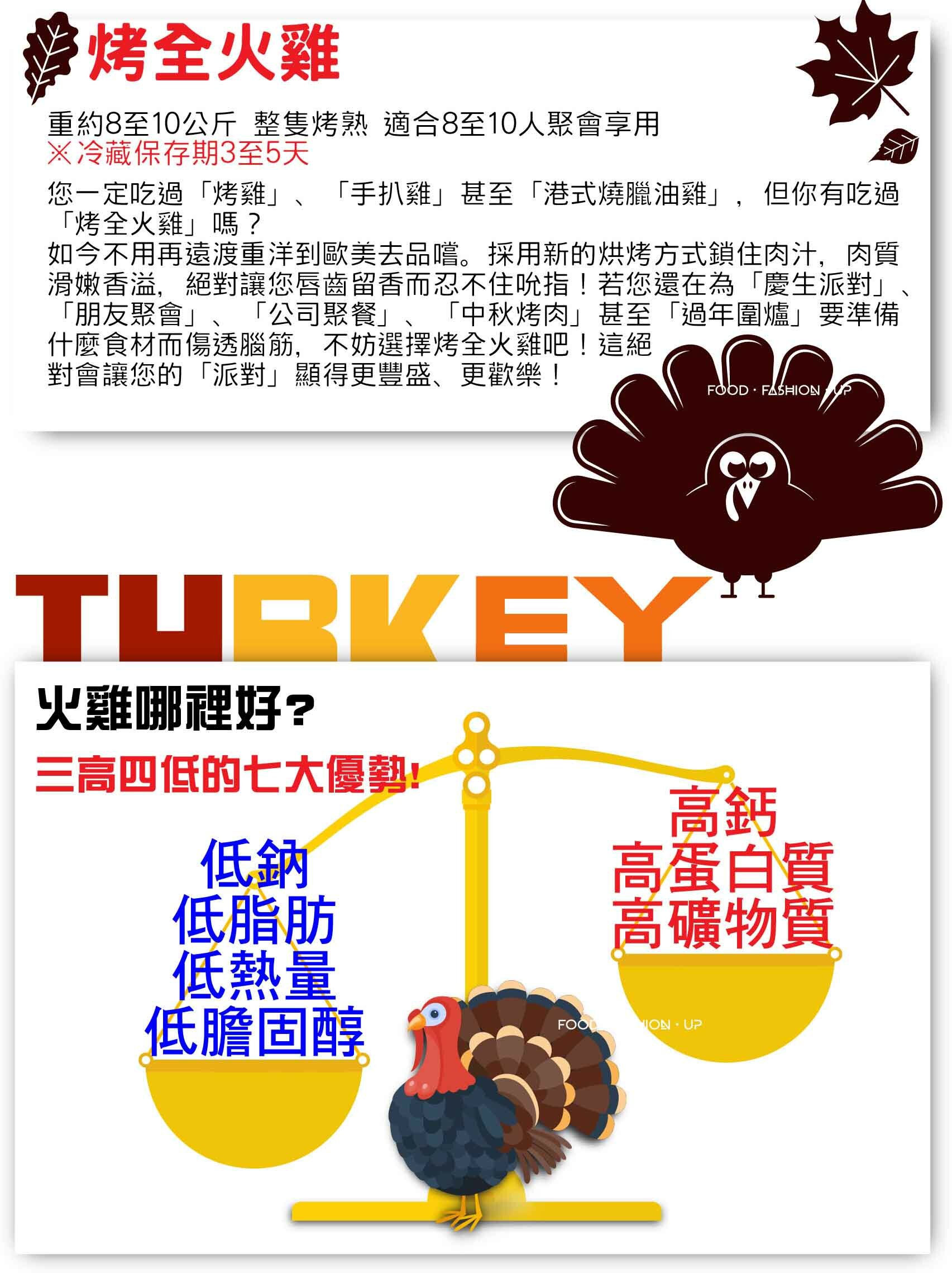 *想在感恩節、聖誕節開火雞趴的朋友,請至少於需求日前5~6個工作天下訂