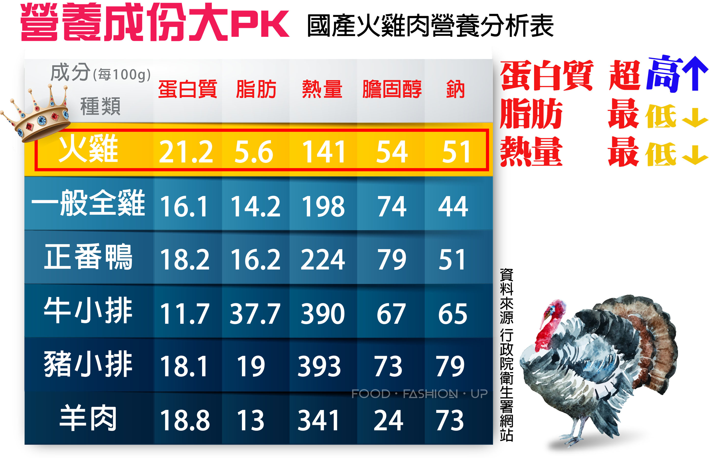 口味香醇鬆軟,營養價值高,火雞肉可是有「三高四低」的獨有特質呢~